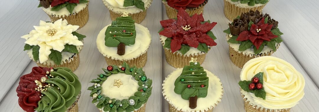 You will be provided with 12 cupcakes and using buttercream produce stunning, colourful festive tops, to impress family and friends. You will learn various techniques on how to create festive flowers,fern cones, tress, wreaths.